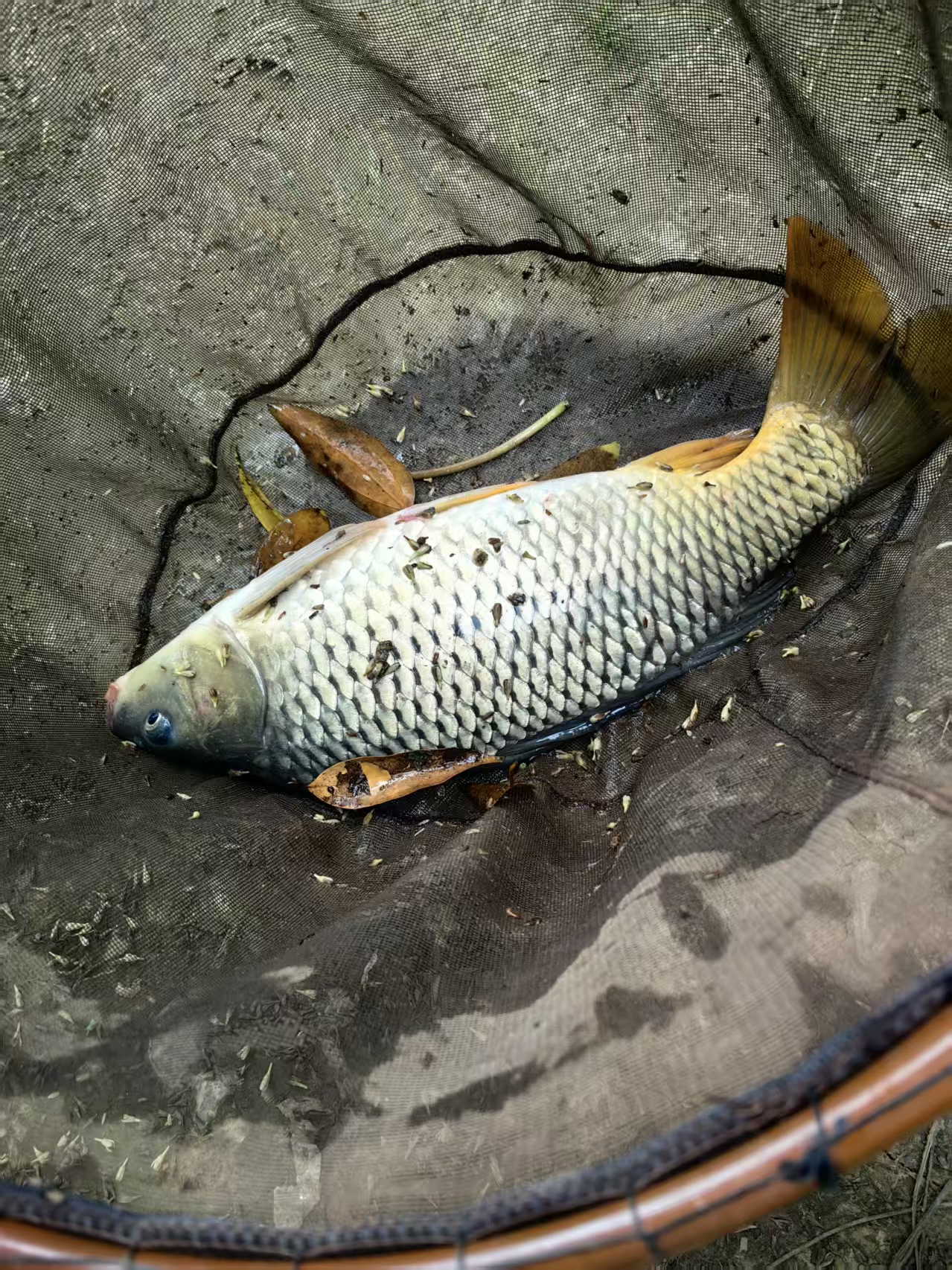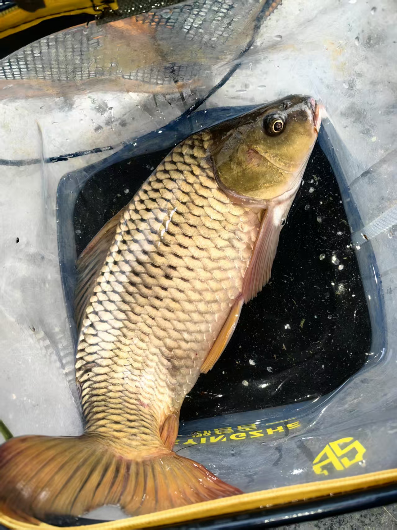 抄网入水,稳稳兜住。提上来一看,少说三四斤重,通体金黄,鳞片完整,漂亮得让人舍不得吃。摘钩的时候它还在嘴里发出”咯嘣咯嘣”的声音,像是在骂我。